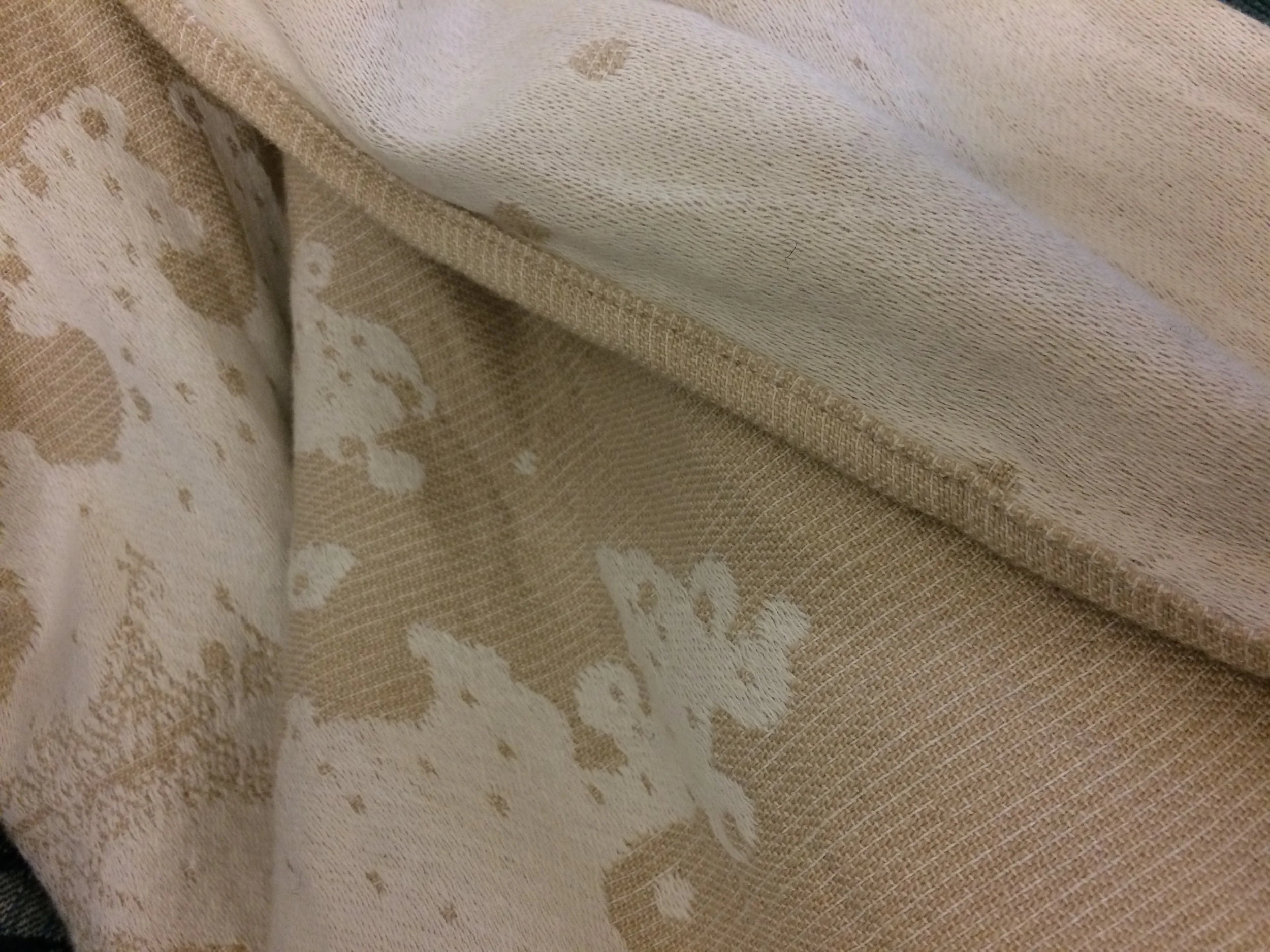 The Early Bird ticket holders were greeted with a lovely goody bag printed with the Firespiral Midwinter design, containing a hoard of treats from the three companies; a Firespiral wrap lanyard & zip pouch (which Hubs has already commandeered for his iPad!), a Little Fellows woven tea towel, and Baie mirror and wrap decoration / tag (mine will be gracing the tree this Yule!). We also got a sample of the new wrap fabric from The Honeycomb Loom, which is available to buy by the metre for all your babywearing (or other!) projects. The fabric feels light, soft & thin.