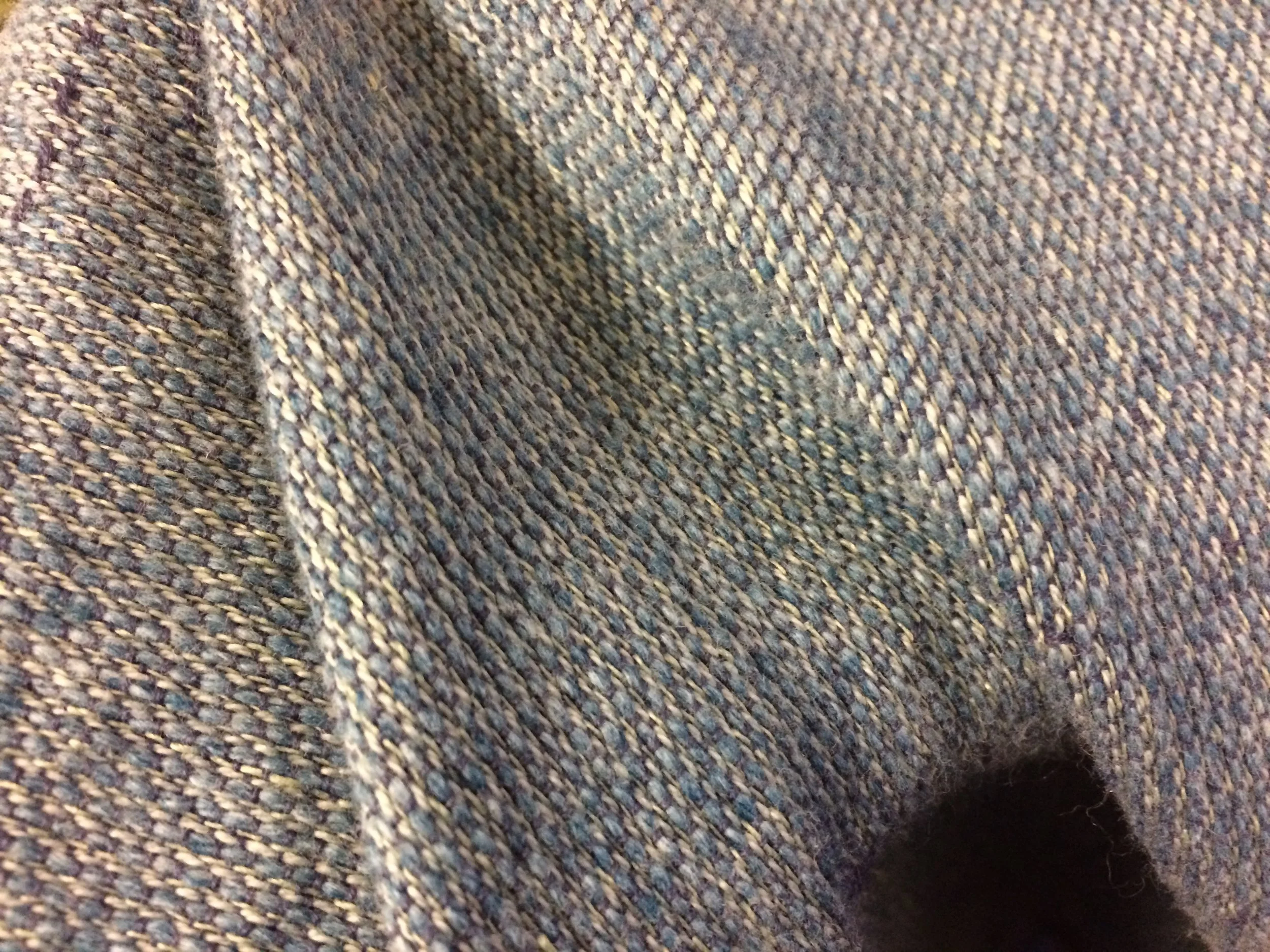Swell Octarine Seafoam is a tri-blend of 65% combed cotton, 20% Merino and 15% linen. It feels really cushy, soft & fluffy and is probably somewhere in the heavy weight range. There's a gorgeous depth to the colour of the weft, which seems to feature at least two different colour threads.