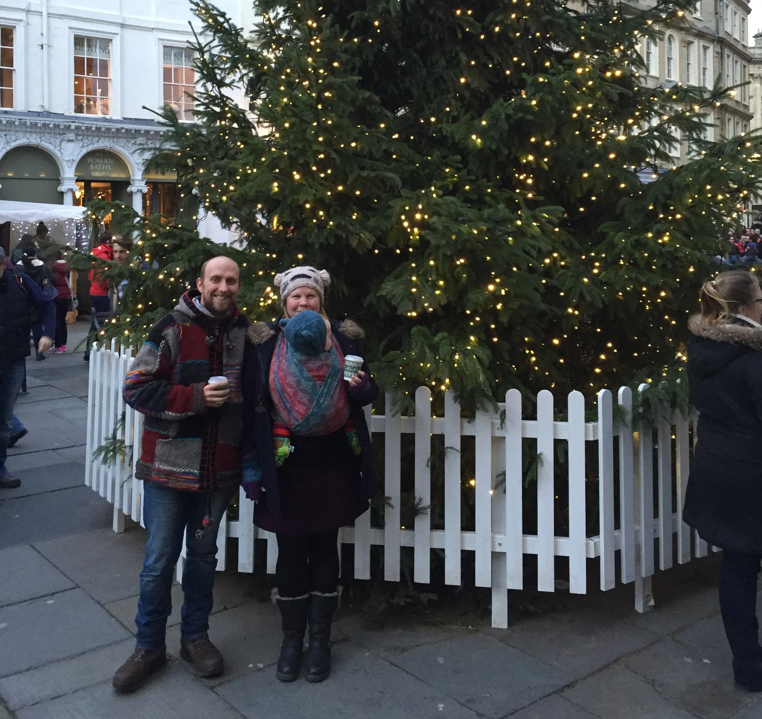 Bath Christmas Market 2015 with our little man wrapped up snugly in our Oscha Starry Night Arthan wrap.